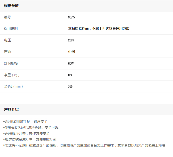 首頁>產(chǎn)品中心>照明>其他便攜式燈>世達手持式工作燈
