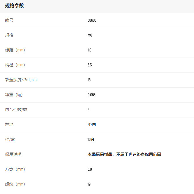 產品名字:世達5件套高速鋼粗牙機用絲錐M6x1.0MM