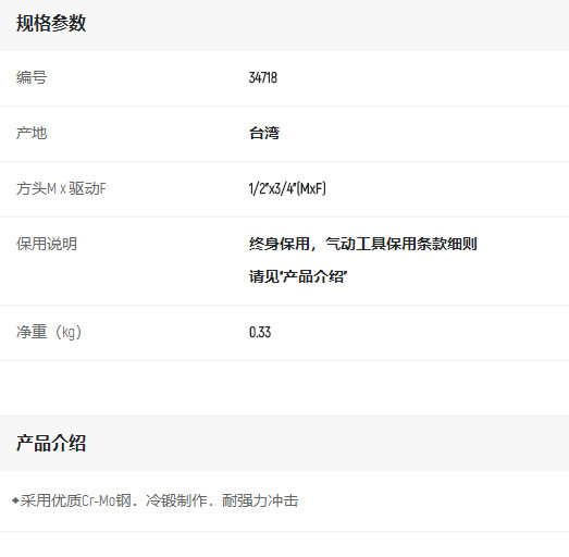 產品名字:世達風動轉接頭1/2"*3/4"