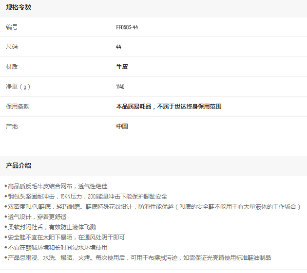 產(chǎn)品名字:世達(dá)休閑款保護(hù)足趾電絕緣安全鞋44碼