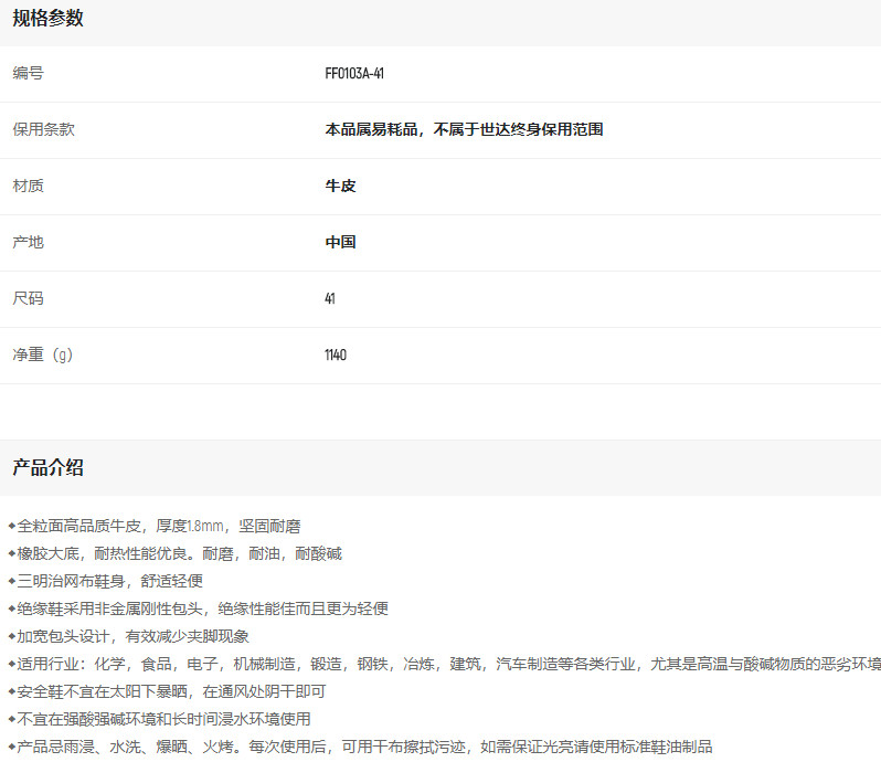 產(chǎn)品名字:世達(dá)標(biāo)準(zhǔn)款多工能安全鞋41碼