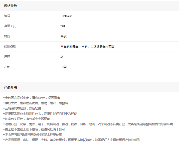 產(chǎn)品名字:世達(dá)標(biāo)準(zhǔn)款多功能安全鞋保護(hù)足趾