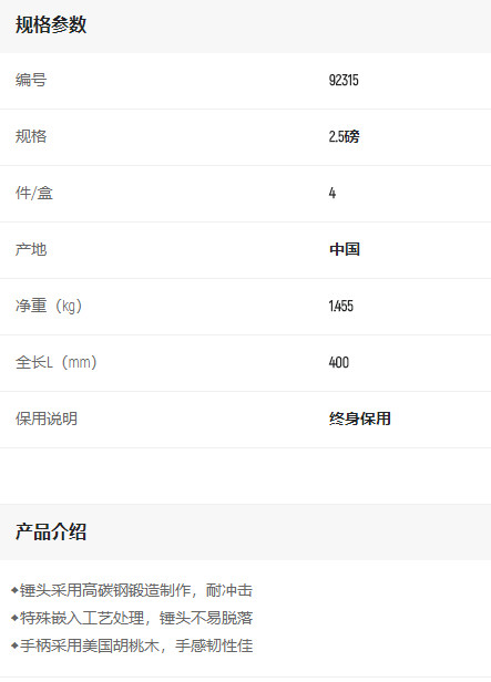 產(chǎn)品名字:世達(dá)木柄圓頭錘2.5磅