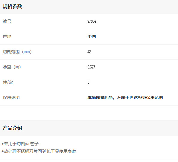 產(chǎn)品名字:世達PVC管子割刀42mm