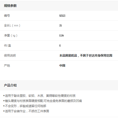 首頁(yè)>產(chǎn)品中心>切割、敲擊工具>其他敲擊工具>世達(dá)塑料軟性錘頭35MM