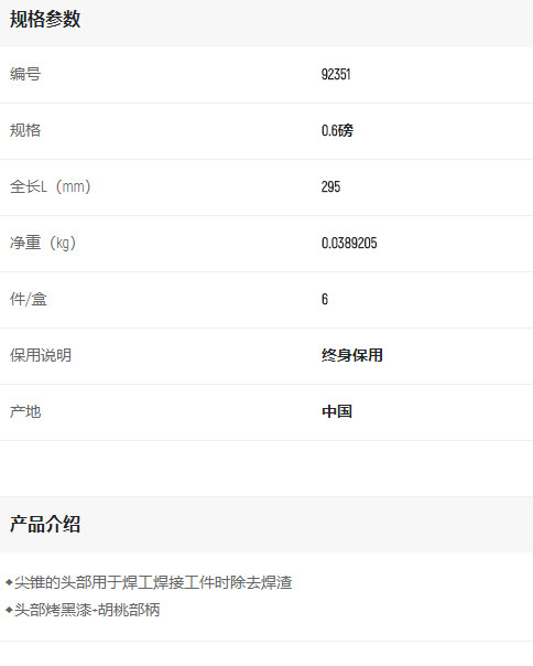 產(chǎn)品名字:世達(dá)胡桃木柄焊工除渣錘0.5磅