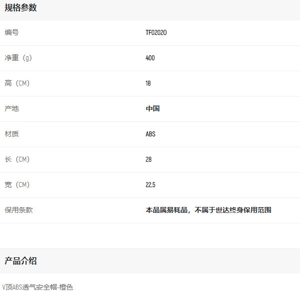 產(chǎn)品名字:世達(dá)V頂ABS標(biāo)準(zhǔn)安全帽-橙色