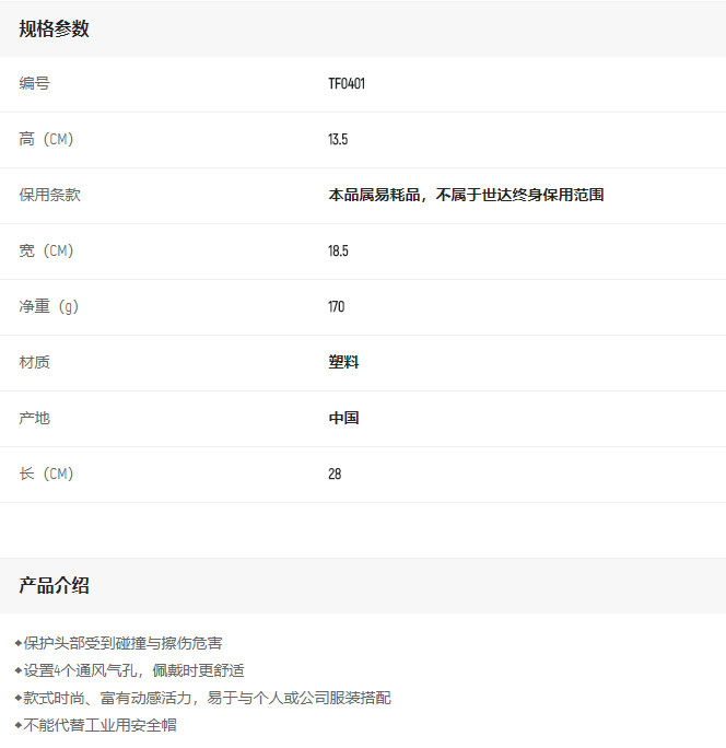產(chǎn)品名字:世達(dá)輕型防撞帽