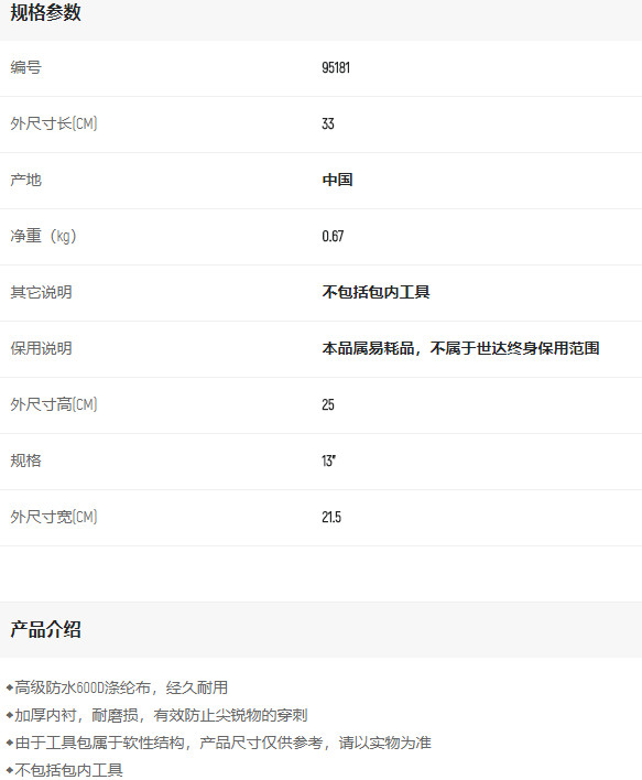 產(chǎn)品名字:世達(dá)工具包13寸