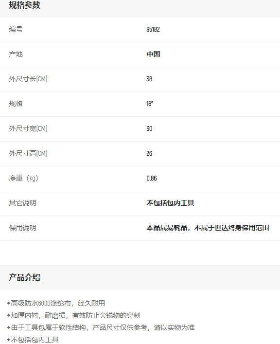 產(chǎn)品名字:世達(dá)工具包16寸