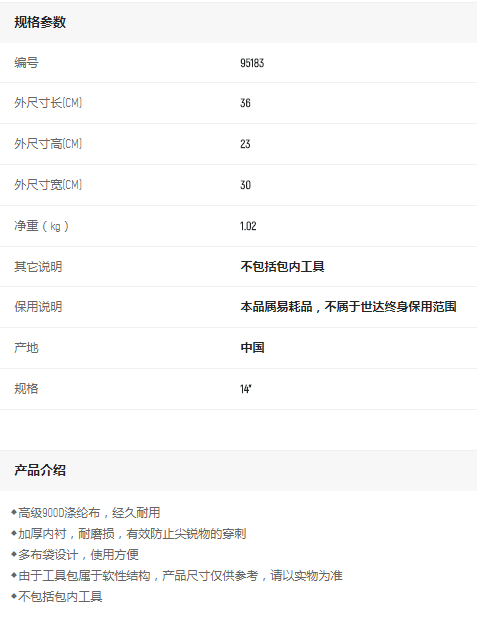 產(chǎn)品名字:世達(dá)工具包14寸