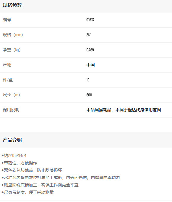 首頁(yè)>產(chǎn)品中心>測(cè)量工具>水平尺>世達(dá)帶磁水平尺600mm/24寸