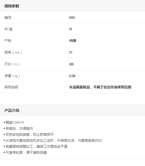產(chǎn)品名字:世達(dá)帶磁水平尺300MM/12